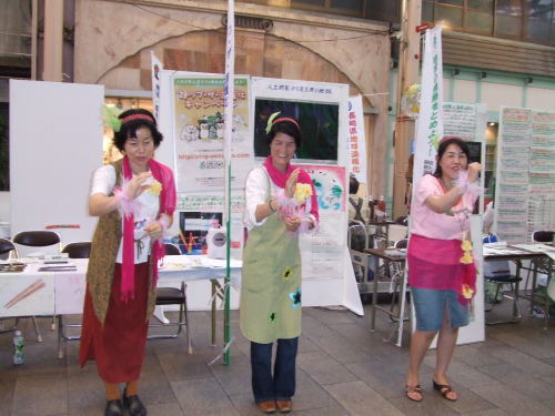 | 地球温暖化防止活動推進員の鹿田さんも飛び入りでダンス | 2人は他のブースにも出前ダンスしました。 |