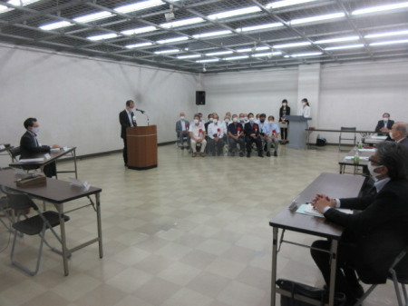 左からえことぴぃ長崎、寿古町内会、西有家老人クラブ連合会、長崎キャノン㈱、川口保夫