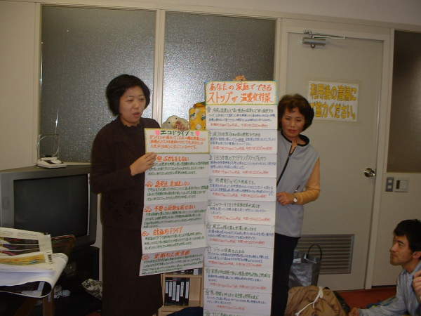 伊豫田さん、思いのこもった地球温暖化啓発パネルを紹介